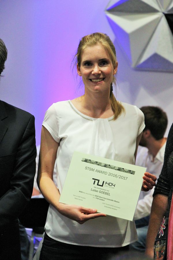 Die Professur Bauchemie und Polymere Werkstoffe wurde durch Mitarbeiterin Luise Göbel vertreten. Sie präsentierte ihr Promotionsthema mit einem Vortrag zum Thema „Early-age experimental characterization and semi-analytical modeling of elasticity and creep of polymer-modified cement pastes”. Während des Konferenz-Dinners wurde Luise Göbel zudem mit dem STSM-Award for PhD-Students ausgezeichnet, der die erfolgreiche Zusammenarbeit mit der TU Wien (Host: Prof. Bernhard Pichler) würdigte.