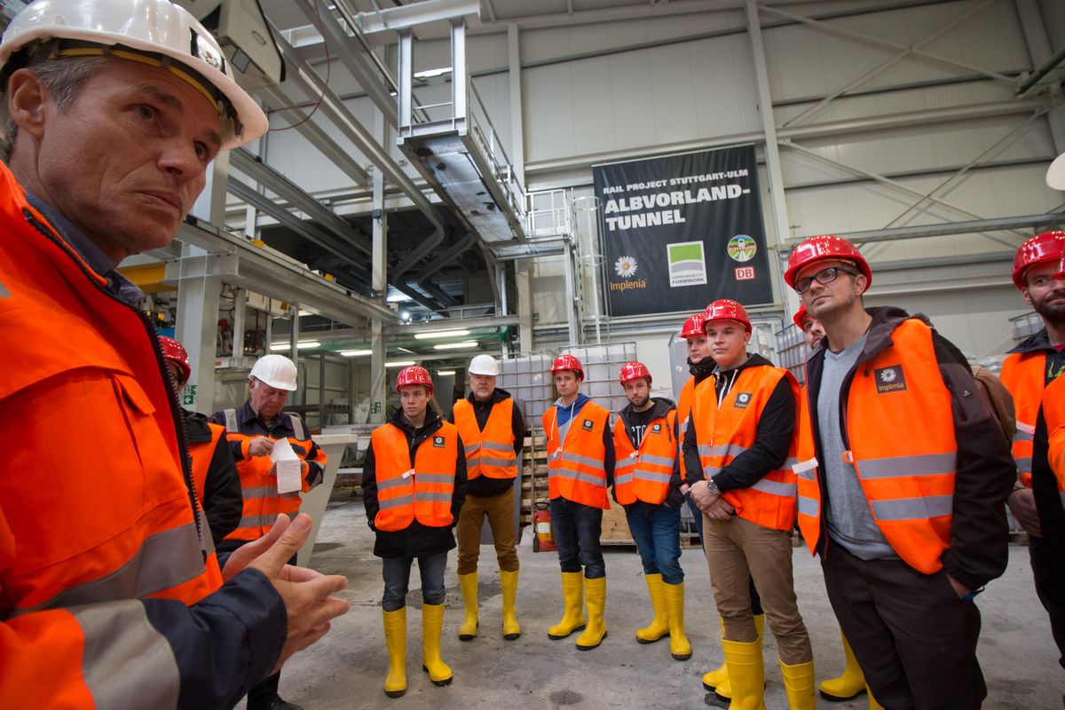 Am 27.10.2017 besuchten die Mitarbeiter/innen der Professur Bauchemie und Polymere Werkstoffe sowie fünf Studierende des Masterstudienganges Baustoffingenieurwissenschaft die Baustelle des Albvorlandtunnels.