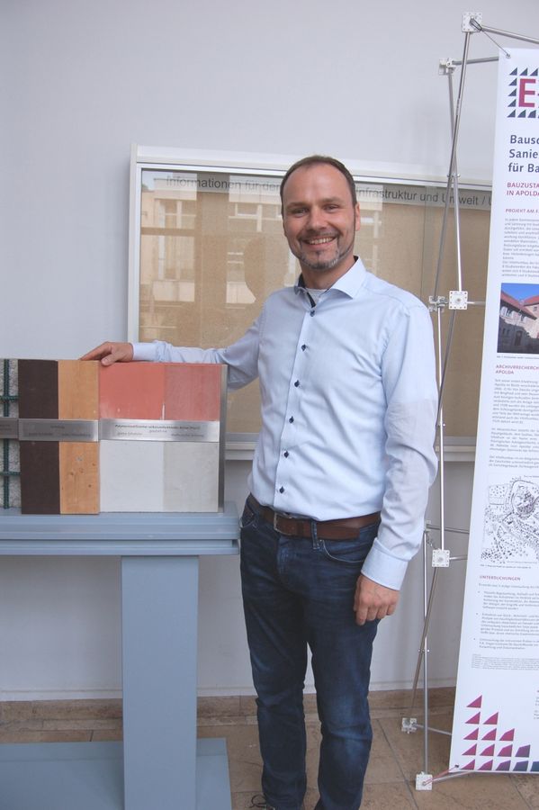 Auch die Ergebnisse des Projektes "Bauschadensanalyse und Sanierung" wurden auf einem Poster präsentiert. Dieses Projekt ist ein wesentlicher Bestandteil des Masterstudiengangs Baustoffingenieurwissenschaft und hatte in diesem Jahr eine Bauzustandsanalyse des Dachstuhles und der Fassade des Vitzthumsbaus des Schlosses Apolda zum Inhalt.