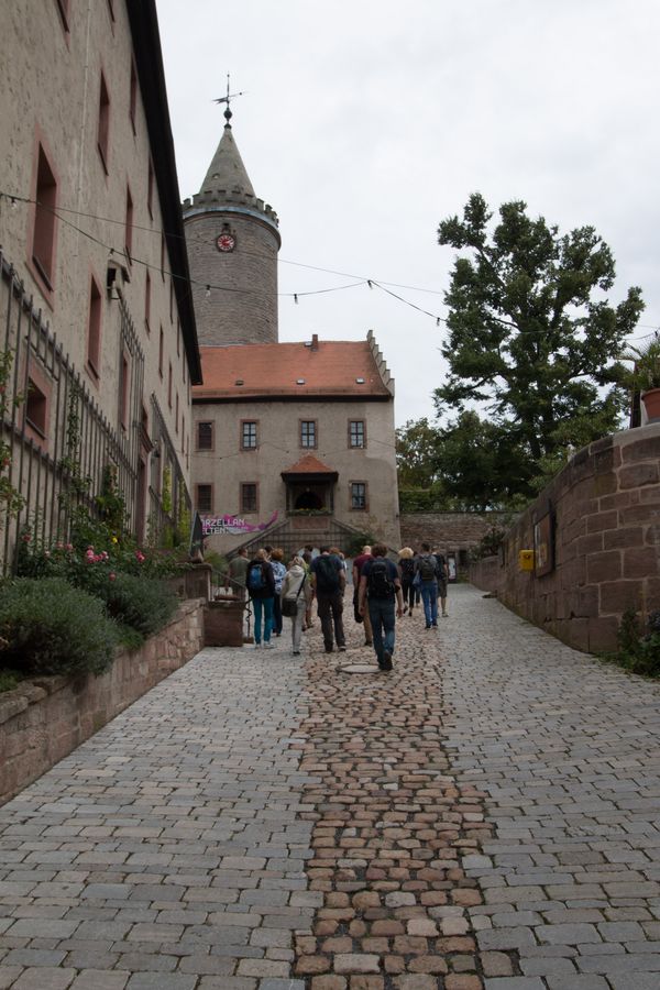 Am Nachmittag begab sich die Professur ChemPoWer auf die nahegelegene Leuchtenburg, die im Jahre 1221 erstmals urkundlich erwähnt wurde, zunächst als Verwaltungssitz diente und lange Zeit als Gefängnis- und Irrenanstalt fungierte, bevor sie im 19. Jahrhundert für den Tourismus entdeckt wurde. Aufgrund mangelnder Nachfrage nach dem zweiten Weltkrieg wurde der dortige Hotel- und Jugendherbergsbetrieb nach und nach eingestellt. Seit 2007 befindet sich die Leuchtenburg im Besitz der Leuchtenburg-Stiftung, wird für Kunst- und historische Ausstellungen genutzt und schrittweise renoviert und ausgebaut. Hier wurde der Ausflug der Mitarbeitenden der Professur mit einer überaus unterhaltsamen historischen Führung abgerundet.