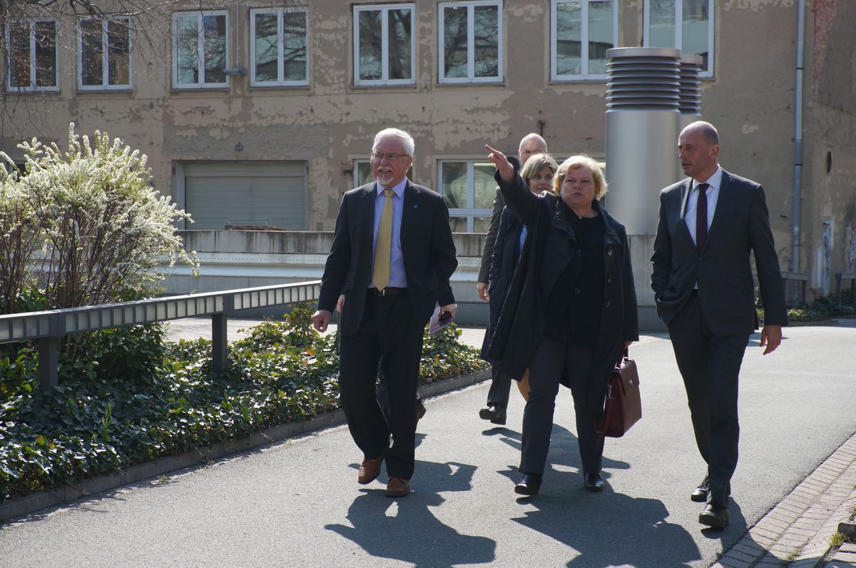 Im Rahmen seines Besuches am 23. April 2015 an der Bauhaus-Universität Weimar war der Thüringer Minister für Wirtschaft, Wissenschaft und Digitale Gesellschaft Wolfgang Tiefensee unter der Thematik "Austausch zu Forschung und Bauvorhaben" in der Coudraystraße zu Gast.