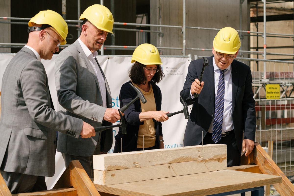 Die Bauhaus-Universität Weimar hat das Richtfest des neuen Laborgebäudes in der Coudraystraße 13D zünftig gefeiert und die Politik zeigte sich begeistert über den kühnen Bau.