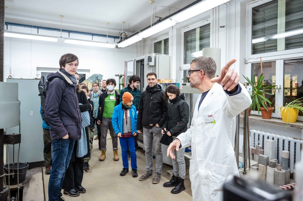 Auch die Fakultät Bauingenieurwesen war vertreten und öffnete ihre Labore in der Coudraystraße 4 bis 13. An der Professur Bauchemie und Polymere Werkstoffe konnten Nachwuchs- und Hobbywissenschaftler/-innen sich stündlich der Führung »CSI Baustoffe – ein Exkurs in die Baustoffforschung« anschließen und das F. A. Finger-Instítut für Baustoffkunde entdecken, unterschiedliche Einblicke in eine mögliches Studium gewinnen sowie echte Forschung hautnah und live erleben. Die Führung informierte auch darüber, wie moderner Untersuchungsmethoden helfen, Materialien und Baustoffe zu analysieren und damit letztlich zu verstehen.