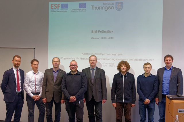 Am 26. Februar 2019 präsentierte die vom Freistaat Thüringen geförderte und von Prof. Guido Morgenthal geleitete Forschergruppe „Digital Engineering für Planungs- und Revitalisierungsprozesse von Stadtquartieren“ (2016 FGR 0026) ihre Ergebnisse aus 28 Monaten Forschungstätigkeit vor einem interessierten Fachpublikum in Weimar. Im Fokus stand die automatisierte Zustandserfassung von Bauwerken mithilfe digitaler Methoden.