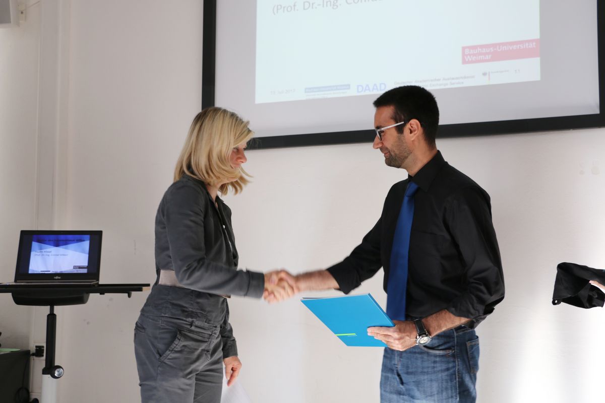 Damit wurde sowohl seine wissenschaftliche Arbeit an unserer Professur gewürdigt. In diesem Jahr vertritt Herr Alsaad unsere Professur auf den beiden großen renommierten Konferenzen Healthy Buildings (Polen) und Building Simulation (USA). Hinzu kommt ein Forschungsaufenthalt an der Denmark Technical University. Neben der wissenschaftlichen Arbeit wurde mit dem Überreichen des Preises auch sein gesellschaftliches Engagement an der Bauhaus-Universität Weimar geehrt. Herzlichen Glückwunsch!
