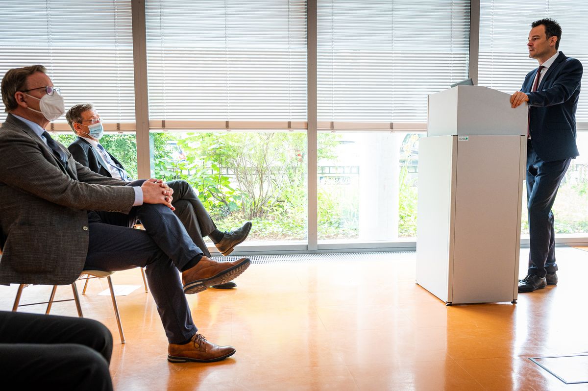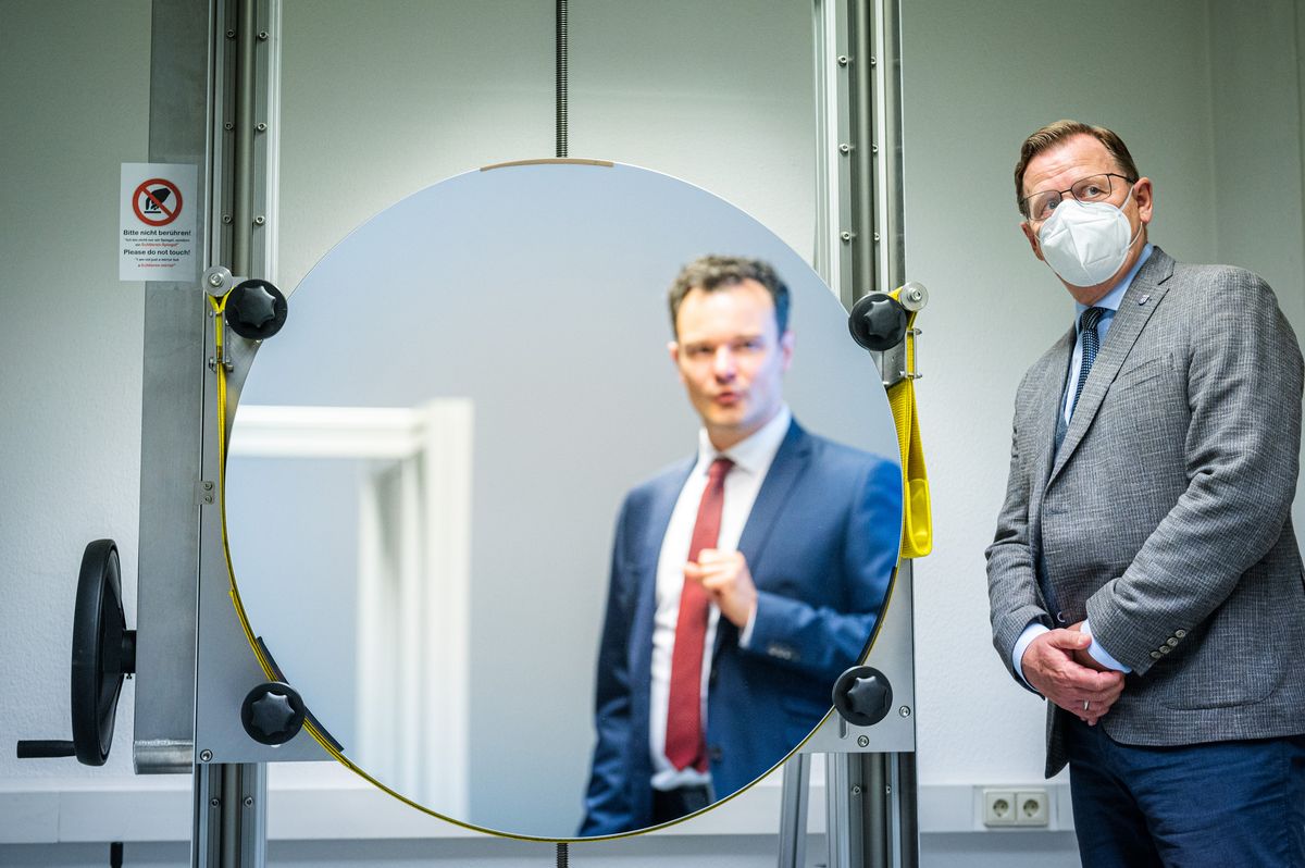 Im Rahmen seiner Thementour »Gesellschaftlicher Zusammenhalt« hat Thüringens Ministerpräsident Bodo Ramelow am Mittwoch, 7. Juli, die Bauhaus-Universität Weimar besucht. Der Tag stand unter dem Motto »Infektionsschutz durch Technologie«. Passend zum Thema präsentierte die Professur Bauphysik die optischen Schlierenverfahren, mit denen seit Beginn der Covid-19-Pandemie untersucht wird, wie sich Atemluft im Raum ausbreitet und wie wirksam verschiedene Typen von Masken sind.