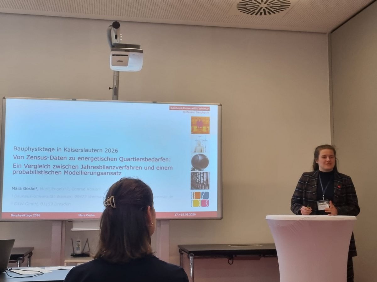 Am 18. und 19. März 2026 war die Professur Bauphysik aktiv auf den diesjährigen Bauphysiktagen in Kaiserslautern vertreten. Professor Conrad Völker und Albert Vogel moderierten Sessions und führten durch spannende Diskussionen.