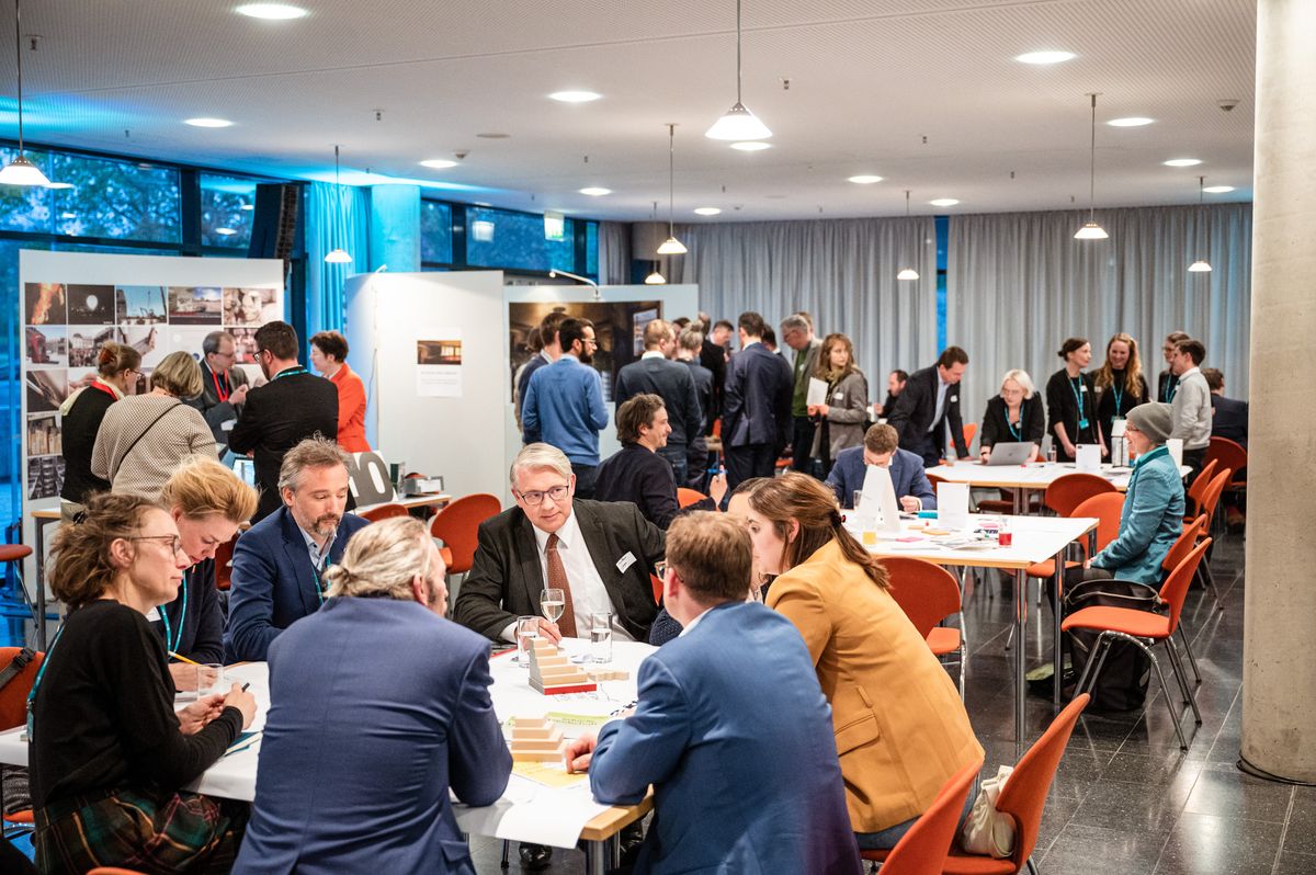 Nach einem visuell-akustischen Auftakt mit Video und Performance sprachen Birgit Pommer, Präsidentin des Thüringer Landtages, Prof. Peter Benz, Präsident der Bauhaus-Universität Weimar, und Dr. Ulrike Lorenz, Präsidentin der Klassik Stiftung Weimar, einige Worte zur Begrüßung. Danach präsentierten beide Institutionen an insgesamt 17 Tischen, wie breit gefächert die Themen und Aufgabenstellungen sind, denen sich ihre Forschenden, Lehrenden und Mitarbeitenden täglich widmen. Angefangen bei Digitalisierung, zukunftssicherem Bauen und Wohnen über Start-Ups und den Umgang mit unserer Vergangenheit bis zu der Bedeutung des Bauhaus früher und heute reichten die Diskussionsschwerpunkte an den Tischen, an denen viele Aspekte der vorgestellten Projekte detailliert erörtert und intensiv besprochen wurden. Die Gäste konnten im World-Café-Format im Laufe des Abends mehrere Thementische aufsuchen.