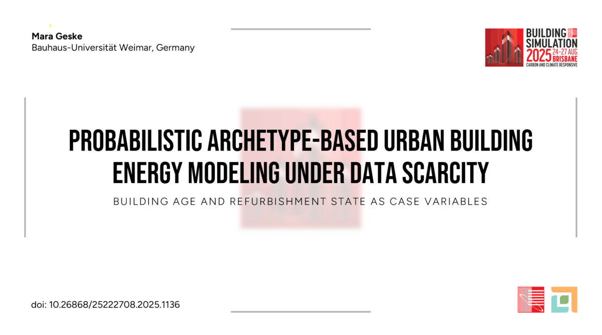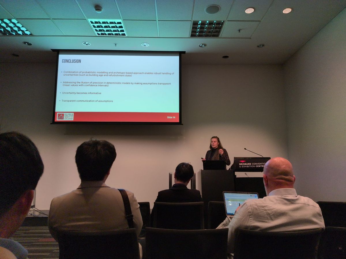 Unter dem Titel " Probabilistic Archetype-Based Urban Building Energy Modeling under Data Scarcity: Building Age and Refurbishment State as Case Variables" berichtete Mara Geske aus ihrer aktuellen Forschung. Neben vielen Inhaltlichen Sessions gab es verschiedene umrahmende Veranstaltungen, wie beispielsweise das Social breakfast, die zur Vernetzung und zum Austausch beigetragen haben.
