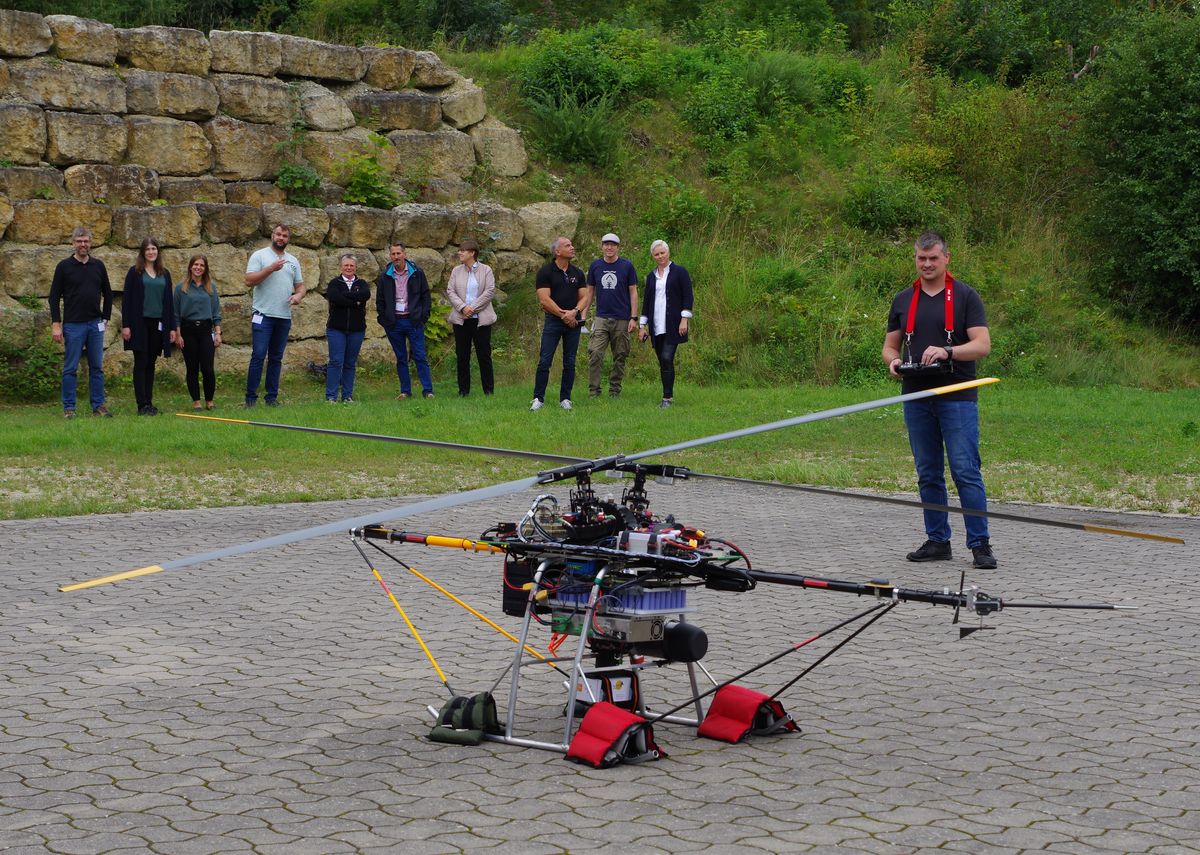 Nach zwei Jahren gemeinsamer Forschungsarbeit war es endlich soweit, dass die im Verbundvorhaben FlyHy entwickelte, mit Wasserstoff betriebene Hubschrauber-Drohne beim Projektpartner edm aerotec im Beisein des MDR auf ihre Funktion hin getestet werden konnte. Alle Komponenten funktionierten einwandfrei im Zusammenspiel. Nur abheben durfte die Drohne nicht, da hierfür ein umfangreiches Genehmigungsverfahren erforderlich wäre. Die Bauhaus-Universität Weimar hat in dem Vorhaben, das von der Professur Energiesysteme koordiniert wurde, das Wasserstoffversorgungssystem beigesteuert und die Integration der Wasserstoff-Brennstoffzelle in die Drohne vorgenommen.