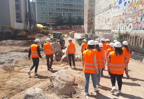Am 01.06.2023 fand unsere Exkursion nach Leipzig statt, bei welcher unter der Führung von Herrn Galle als Bauleiter der Firma Züblin die anspruchsvolle Baugrube für den Neubau des Harmelinquartiers besichtigt werden konnte. Während ein anschaulicher Vortrag zunächst das Bauvorhaben mit seiner vielzahl an geotechnisch herausfordernden Maßnahmen vorstellte, konnte anschließend von den Studierenden die Errichtung und Verankerung einer überschnittenen Bohrpfahlwand beobachtet werden. Auch die Thematik des Umgangs mit Munitionsresten wie Bomben aus dem zweiten Weltkrieg wurde angesprochen und von den Studierenden mit großem Interesse verfolgt.