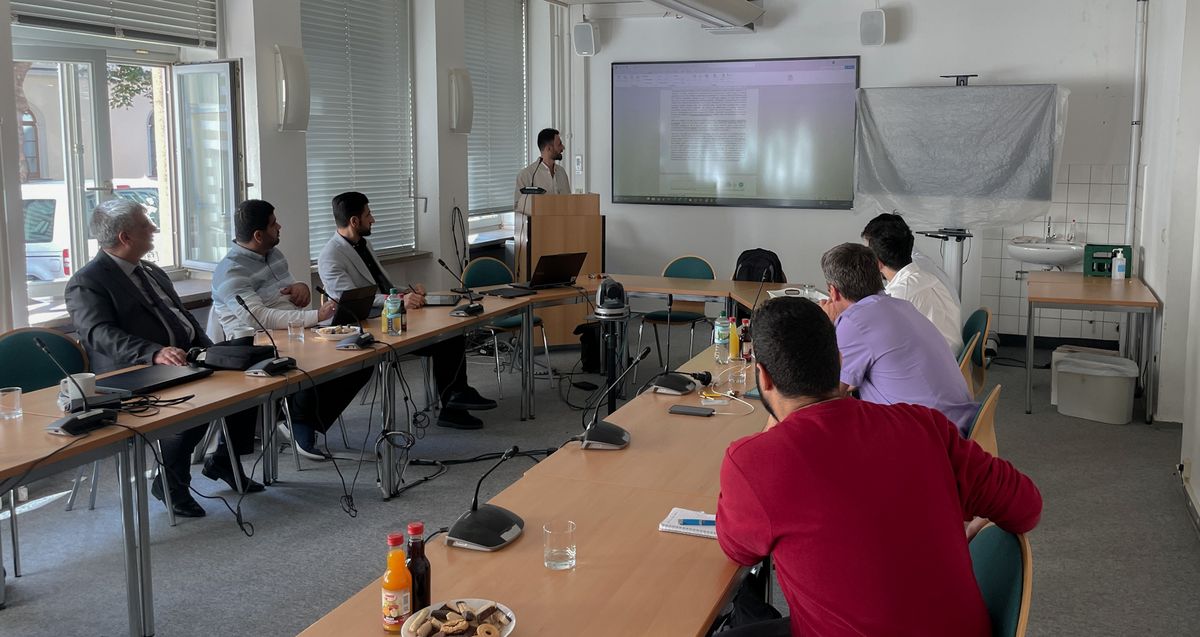 In Weimar fand auch ein Projekttreffen statt, an dem Vertreter der BUW, darunter Jun.-Prof. Dr.-Ing. L. Abrahamczyk, M.Sc. P. L. Hasan, M.Sc. B. Bapir, der UoS, darunter Prof. Dr. S. Kurshid, Dr. A. Mohammed, Dr. S. Rashid und Dr. B. Hamah Saeed, und der TIU, vertreten durch Dr. B. Haidar und M.Sc. H. Muslih, teilnahmen. Das Treffen bot eine Plattform, um den Projektfortschritt zu überprüfen, die verbleibenden Aufgaben und Ziele zu besprechen und die anstehenden Aufgaben zu verteilen. Zu den wichtigsten Tagesordnungspunkten gehörten Absprache zu den Aufgaben im Projektmanagement, eine Überprüfung der erwarteten Ergebnisse und die Planung künftiger Maßnahmen und Kooperationen.