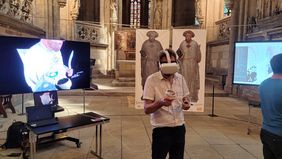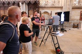 Im Zuge des fünfjährigen von der Deutschen Bundesstiftung Umwelt (DBU) geförderten Projektes wurden 14 Steinskulpturen aufwendig restauriert (https://www.dom-schatz-halberstadt.de/forschung-sammlung/forschung/#collapseBox-17540). Die Professur hat in Zusammenarbeit mit der Professur Computer Vision in Engineering dieses Projekt vom ersten Tag an begleitet und die digitalen Grundlagen zur Notsicherung und Dokumentation der Steinskulpturen geliefert. In einer Live-Demonstration wurde dem öffentlichen Publikum und Teilnehmern des Kolloquiums die Möglichkeiten der Digitalisierung in der Denkmalpflege vor Augen geführt. Dabei konnten die Steinskulpturen bis in kleineste Detail in einer VR-Umgebung betrachtet werden, die durch die Consensive GmbH (Ausgründung der Bauhaus-Universität Weimar) entwickelt und zur Verfügung gestellt wurde.