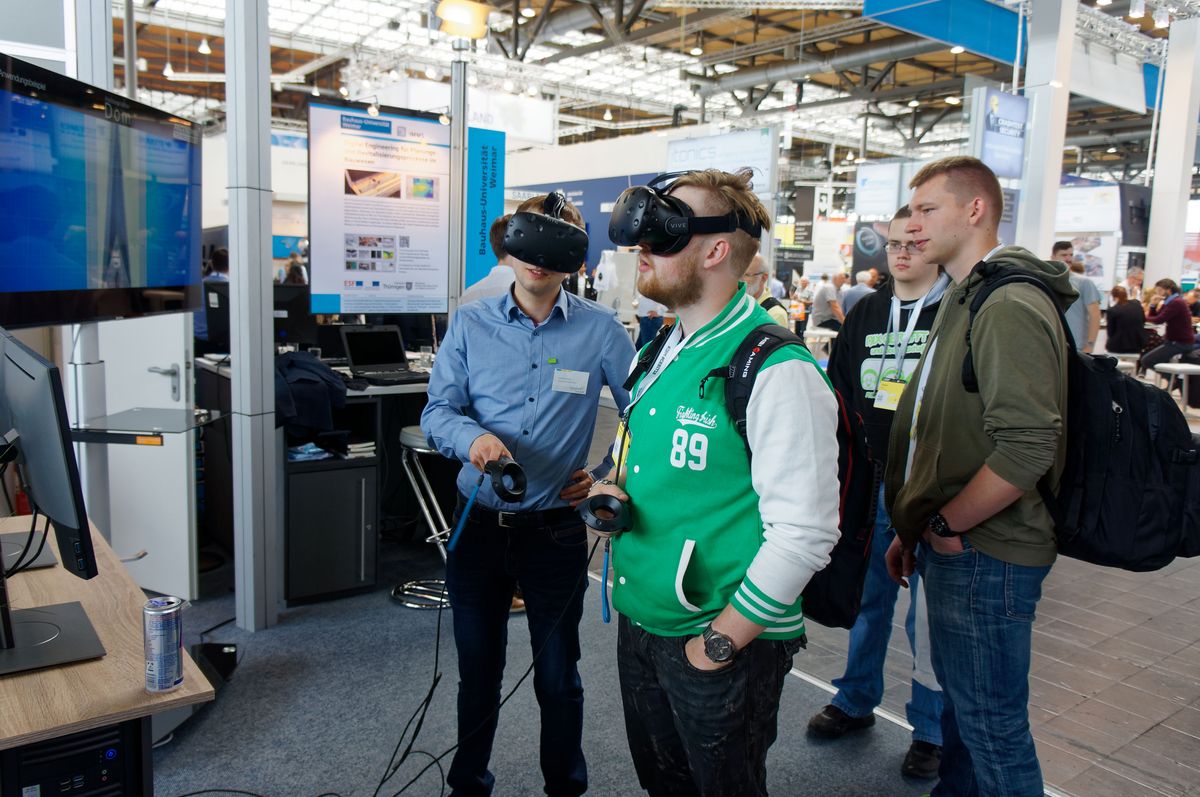 Dabei wurden u.a. in einer von der Arbeitsgruppe von Prof. Fröhlich vorbereiteten HMD (Head-Mounted Display) VR-Demo eindrucksvoll die Verknüpfung von digitalen Methoden der Bauwerksuntersuchungen und der Visualisierung von Untersuchungsergebnissen gezeigt.