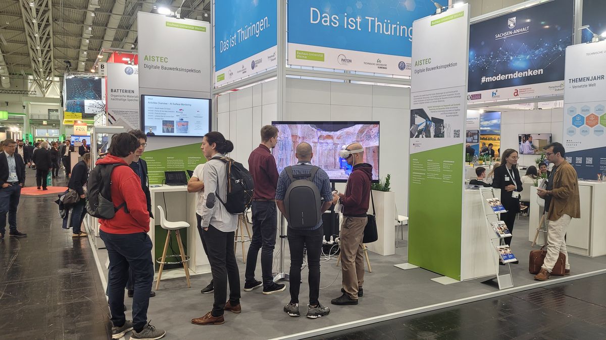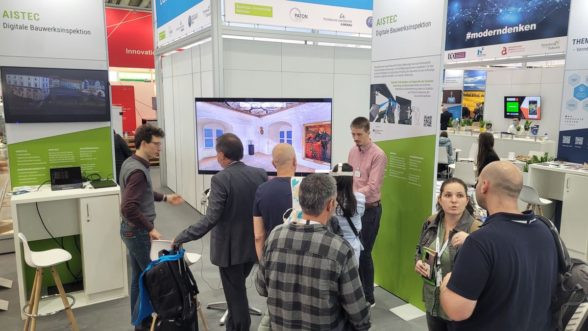 Vom 30. Mai bis 2. Juni präsentierten Marcel Helmrich und Norman Hallermann mit den aus dem Projekt heraus ausgegründeten Firmen INFRALYTICA GmbH und der Consensive GmbH die Ergebnisse aus dem Verbundforschungsvorhaben AISTEC - Bewertung alternder Infrastrukturbauwerke mit digitalen Technologien (https://www.sifo.de/sifo/de/projekte/schutz-kritischer-infrastrukturen/verkehrsinfrastrukturen/aistec/aistec-bewertung-alternder-inf-rke-mit-digitalen-technologien.html) auf dem Messestand Forschung für die Zukunft auf der Hannover Messe. Zu den Besuchern auf dem Stand zählte auch Wirtschaftsminister Wolfgang Tiefensee (https://www.uni-weimar.de/de/universitaet/aktuell/bauhausjournal-online/titel/bauhaus-universitaet-weimar-auf-der-hannover-messe-2022/).