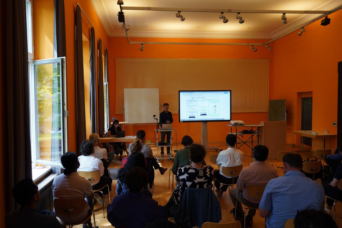 Dieses Jahr wurde der IKI-Tag erstmals als Doktorandenkolloquium durchgeführt, um so dem wissenschaftlichen Nachwuchs Gelegenheit zu geben, aktuelle Forschungsthemen vorzustellen. Von der Professur Modellierung und Simulation - Konstruktion stellten MSc. Gledson Rodrigo Tondo und MSc. Victor Vilceanu ihre Arbeiten aus dem Bereich "Physics-informed machine learning" und "Liquid dampers for mitigating structural vibrations" vor.