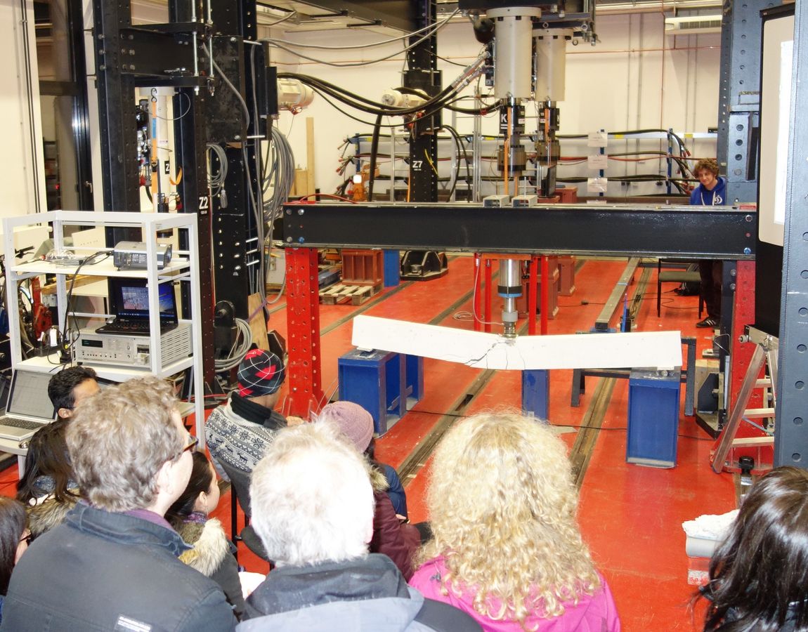 An unterschiedlichen Standorten in der Marienstraße und Coudraystraße konnten Besucher von jung bis alt bei spannenden Experimenten einen kleinen Einblick in Themenfelder des Konstruktiven Ingenieurbaus, der Baudynamik, des Bauwerksmonitorings, der Materialforschung sowie des Wind- und Erdbebeningenieurwesens erlangen. Die Mitarbeiter der Professuren und der Labore standen allen Interessierten, ob mit oder ohne Vorkenntnissen, bei den experimentellen Versuchen Rede und Antwort und ließen sie, wenn möglich, auch selbst mit Hand anlegen.
