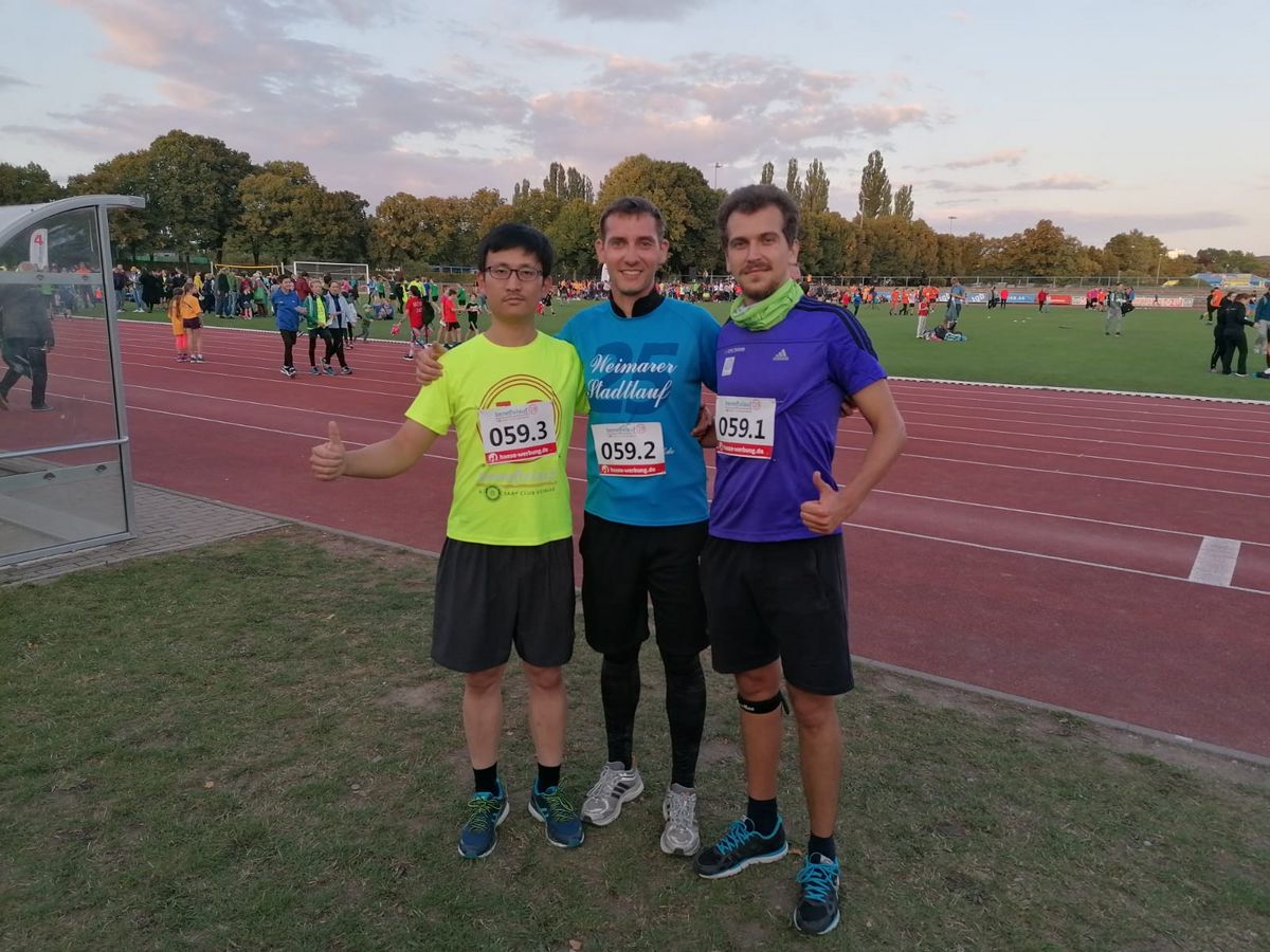 Zusammen mit 1500 anderen Läufern aus 500 Teams (Rekord!) trugen Sebastian Rau, Victor Vilceanu und Wei Wang wieder viele Runden für den guten Zweck bei. Die diesjährige Spende kommt dem Projekt "Kinder kochen für Kinder" des Kinderhauses Weimar bei.
