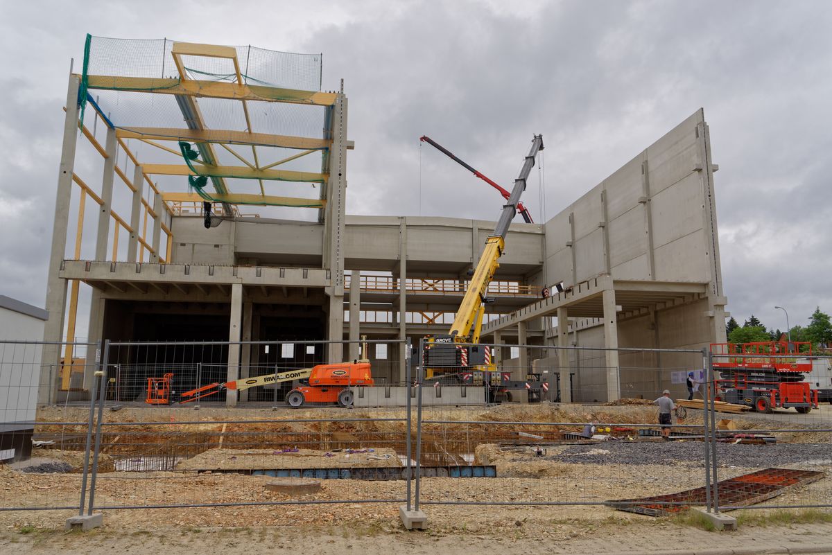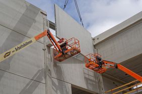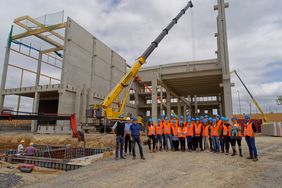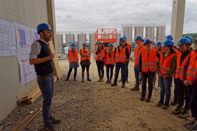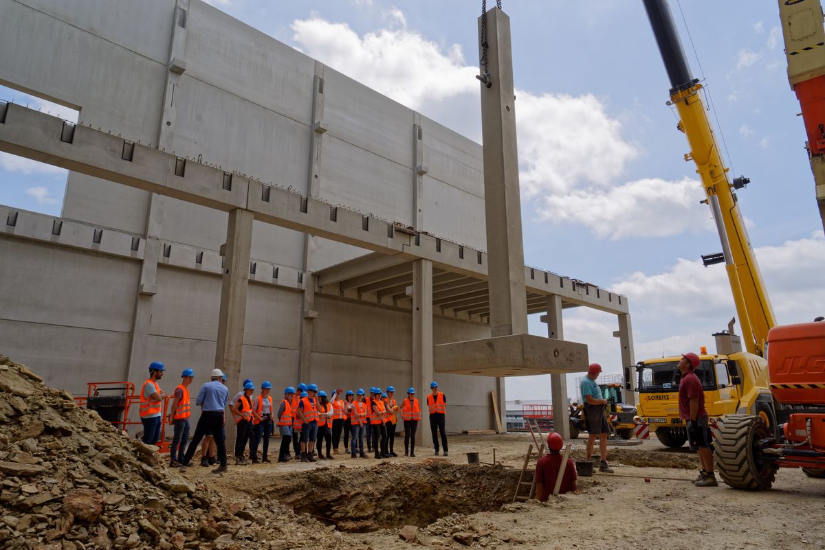 Dabei wurde vor allem auf die Besonderheiten bei der Ausführung in Fertigteilbauweise sowie auf die Berücksichtigung außergewöhnlicher Bemessungssituationen in der Gegend des Vogtlandes (Erdbebenbemessung) eingegangen. Die Studierenden konnten zudem vor Ort die Installation von Fertigteilwänden und -stützen beobachten und bekamen einen Eindruck von der hohen Geschwindigkeit, des vergleichsweise geringen Personalaufwandes aber auch der geringen Herstellungs- und Montagetoleranzen der Fertigteilbauweise im Vergleich zur Ortbetonbauweise vermittelt.