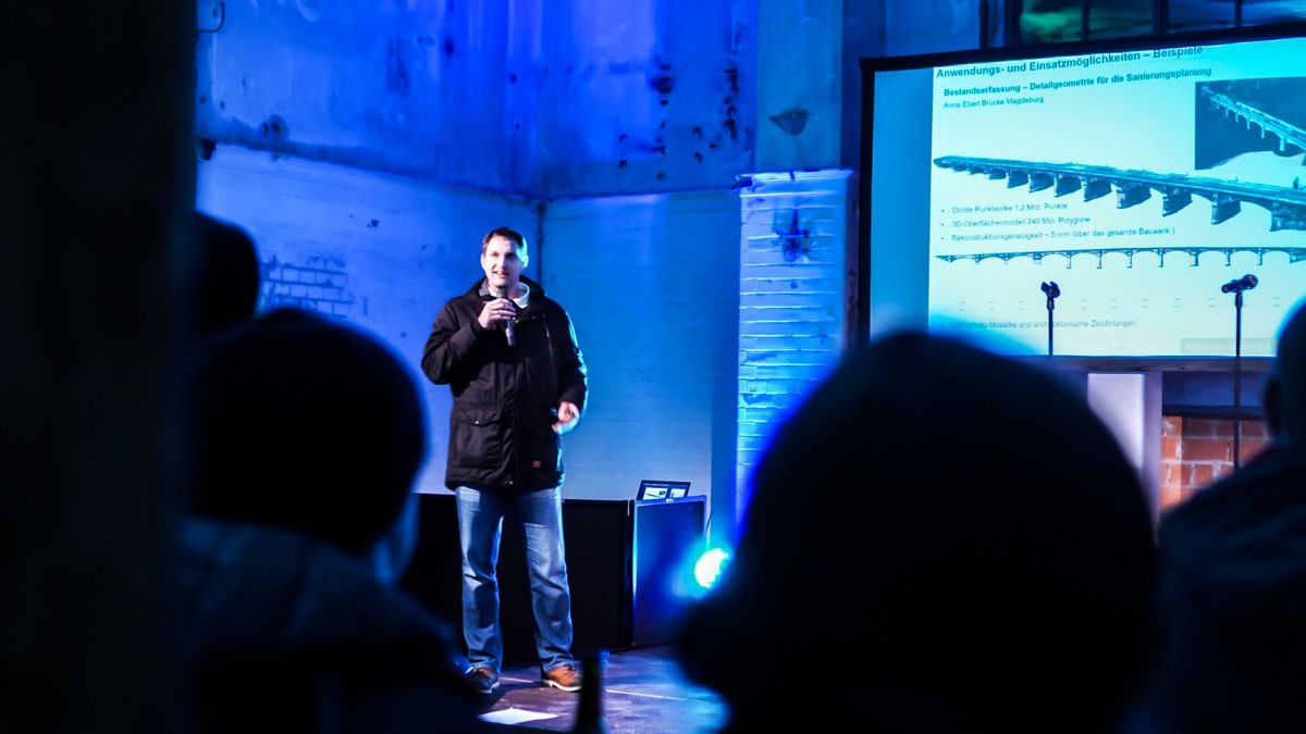 Vor gut 130 interessierten Zuschauern präsentierte Norman Hallermann Ergebnisse aus den Projekten AISTEC, Vogtlandpioniere und Smood – Smart Neighborhood.