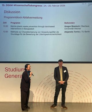 Der Kongress wird von 60 Lehrstühlen aus Österreich, Schweiz und Deutschland unterstützt und richtet sich vornehmlich an Promotionsstudierende. Von unserem Lehrstuhl waren Isabell Lange und Gregor Biastoch mit zwei Beiträgen im wissenschaftlichen Programm vertreten und konnten ihre aktuellen Forschungsergebnisse dem Fachpublikum vorstellen.Im Vortrag mit dem Titel "marine plastic waste prevention through land-based interventions in Bangladesh" präsentierte Gregor zentrale Ergebnisse aus dem Forschungsprojekt SCIP-Plastics. Dabei standen insbesondere methodische Fragestellungen sowie die Einordnung der Ergebnisse in den aktuellen wissenschaftlichen Diskurs im Mittelpunkt. Die anschließende Diskussion zeigte große Interesse an unseren Ansätzen und lieferte wertvolle Impulse für die Weiterentwicklung unserer Arbeiten.
