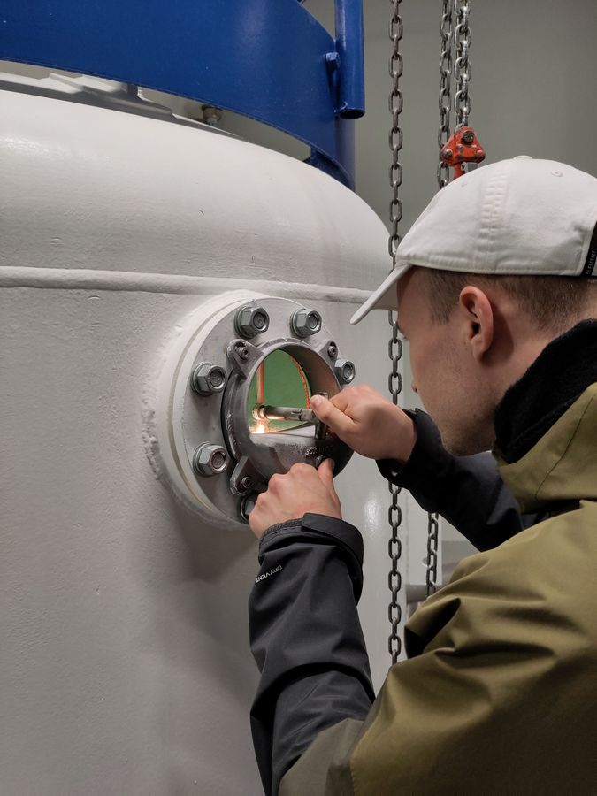 Wie wird nun aus dem geförderten Rohwasser der Talsperre Schönbrunn trinkbares Wasser für Südthüringen? Über eine sehr ausführliche und anschauliche Führung des Leiters des Wasserwerks Schönbrunn, Herrn John Zitzmann, wurden den Studierenden die einzelnen Stufen der Trinkwasseraufbereitung und verfahrenstechnischen Besonderheiten der Anlage erläutert. Zur Krönung gab es auch eine Kostprobe vom frisch aufbereitetem Talsperrenwasser. Geschmackstest: einwandfrei!