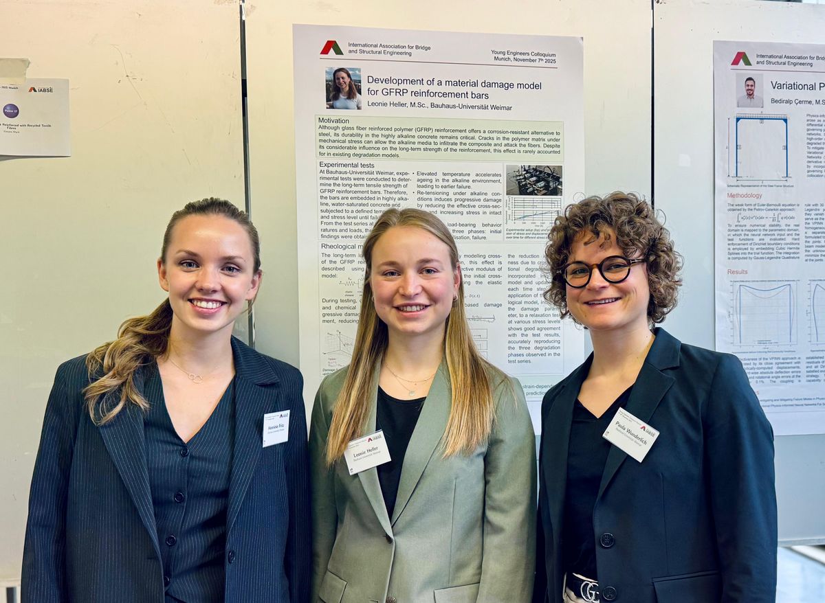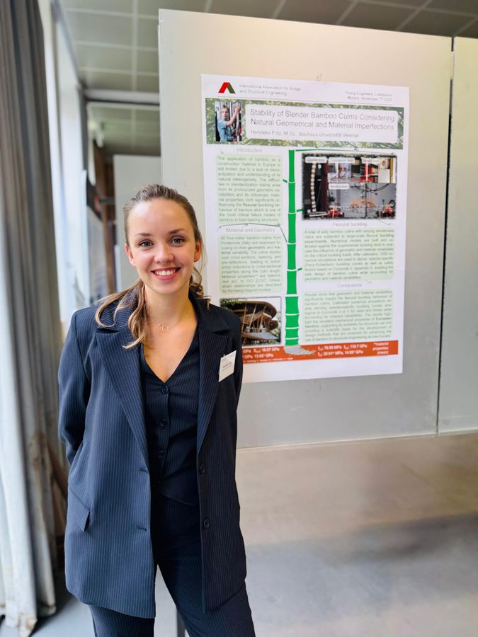 Im Rahmen der Veranstaltung stellten knapp 50 junge Ingenieur*innen aktuelle Projekte vor. Für ihren Kurzvortrag zum Thema "Stability of Slender Bamboo Culms Considering Natural Geometrical and Material Imperfections" erhielt Henrieke Fritz den 1. Platz. Die Inhalte des Vortrages basieren auf ihrer Promotionsforschung. Nähere Informationen dazu sind hier zu finden.
