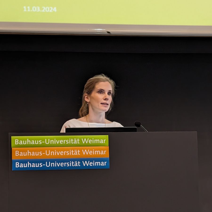 Zum 22. Thüringer Werkstofftag, der am 11. März 2024 im Audimax der Bauhaus-Universität Weimar stattfand, stellte Luise Göbel ihre aktuellen Forschungsthemen vor.