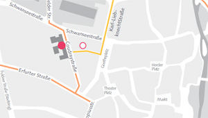 Wenn Sie aus dem Bahnhof heraustreten laufen Sie im Prinzip einfach geradeaus bis ins Stadtzentrum: Sie überqueren den Zebrastreifen vor dem Hauptgebäude und laufen dann geradewegs in die Carl-August-Allee. Diese geht über den Weimarplatz, an dem linker Hand das Einkaufszentrum “Weimar Atrium“ liegt, in die Karl-Liebknecht-Straße über. Sie folgen dieser Straße vorbei am Stadtmuseum und der Post bis sie auf der rechten Seite, vor einem Bäckerladen, einen Fußgängerdurchgang durch die Häuserzeile sehen. Diesem Durchgang folgen Sie und laufen über die Gerhart-Hauptmann-Straße direkt auf den Eingang zum Universitätsgebäude zu.