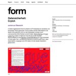 Die für ihren verschlüsselten Messaging-Dienst »Crytch« von den beiden Type Directors Clubs (TDC) in New York und Tokio ausgezeichnet VK-Studenten Moritz Ebeling und Leon Lukas Plum sind von der form interviewt worden. Außerdem nutzten die Redakteure des renommierten Design-Magazins die Crytch-Plattform, um die Überschriften der aktuellen Ausgabe N° 271 zum Thema »Datensicherheit« zu gestalten.