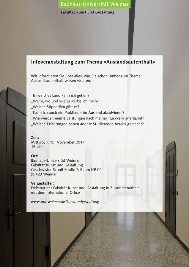 Dekanat der Fakultät Kunst und Gestaltung in Zusammenarbeit mit dem International Office