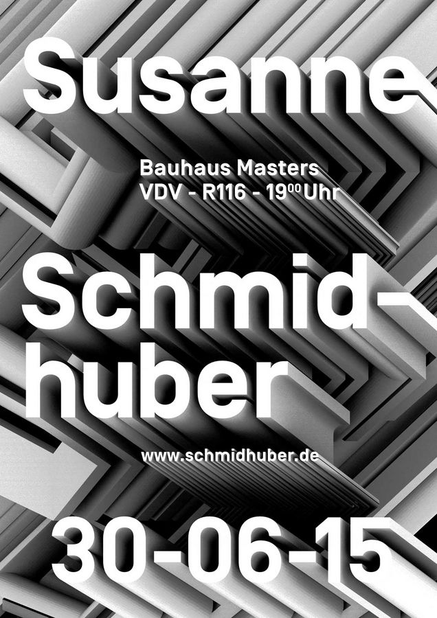 Im Rahmen Veranstaltungsreihe »Bauhaus Masters« an der Bauhaus-Universität Weimar begrüßen wir am Dienstag, 30. Juni 2015, Susanne Schmidhuber zum Thema »Kommunikation im Raum«.