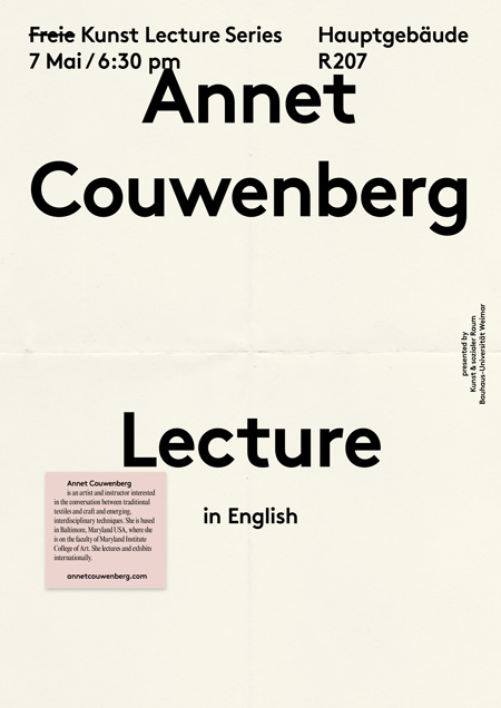 Annet Couwenberg is an artist and instructor interested in the conversation between traditional textiles and craft and emerging, interdisciplinary techniques. She is based in Baltimore, Maryland USA, where she is on the faculty of Maryland Institute College of Art. She lectures and exhibits internationally.