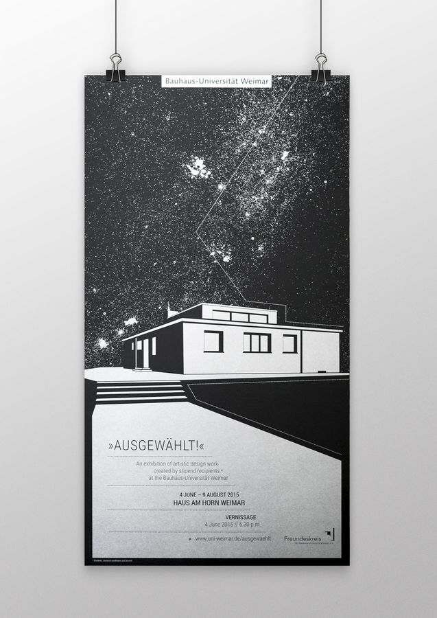 Die Bauhaus-Universität Weimar präsentiert vom 4. Juni 2015 an künstlerisch-gestalterische Arbeiten ihrer Studierenden, Promovierenden und Alumni, die sie aus eigenen Mitteln gefördert hat. Für zwei Monate sind im Weimarer Haus Am Horn Malerei, Installationen, Fotografie, Publikationen sowie filmische Positionen zu sehen. Präsentiert werden die Werke im Rahmen der mehrteiligen Ausstellung »Ausgewählt!«.