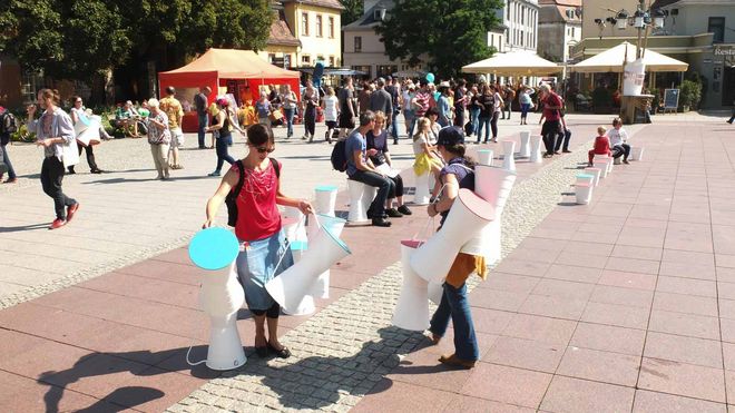HOCKER WANTED: Haben Sie auch einen der begehrten Bauhaus-Hocker auf der Kunstfest-Eröffnung mitgenommen? Dann schicken Sie uns ein Foto von Ihrem Exemplar und gewinnen Sie das schwarze Unikat aus der Reihe, signiert von Kunstfest Weimar-Chef Christian Holtzhauer und von Designer Prof. Andreas Mühlenberend!