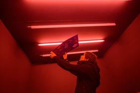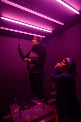 An den Projekten »Monochromatischer Lichtraum« und »Buchmesse 2015« sind 14 Studierende aus sechs Nationen beteiligt.