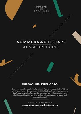 Das Sommernachtstape ist ein kuratiertes Programm studentischer Videos und Kurzfilme an der Fakultät Gestaltung, das im Rahmen der Summaery am 12. Juli 2013 im Audimax gezeigt wird.
