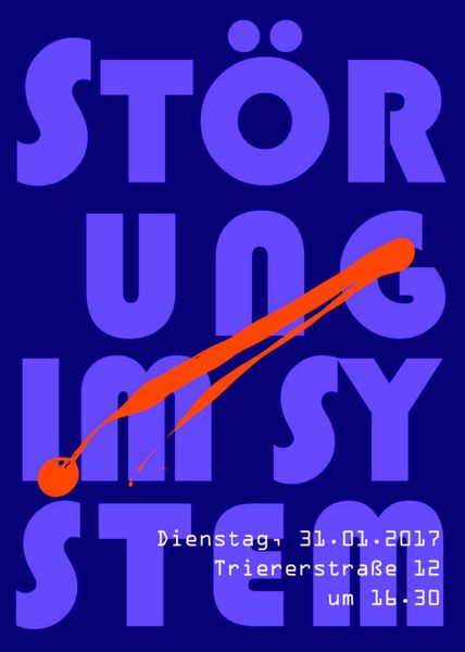 Im Studiengang Lehramt Kunsterziehung an Gymnasien sind die Arbeiten aus dem Einführungsprojekt »Probelauf« unter dem Titel »Störung im System« zu sehen. Ebenso werden die Absolventinnen und Absolventen verabschiedet.