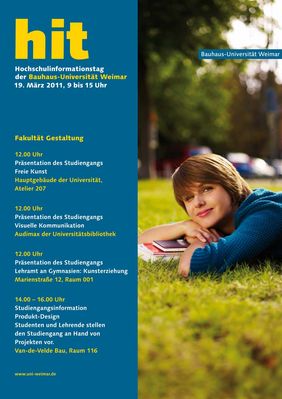 Am Samstag, 19. März 2011 können sich zukünftige Studienbewerber auf dem Hochschulinformationstag einen genauen Überblick über die Angebote der Bauhaus-Universität Weimar und der Fakultät Gestaltung verschaffen.