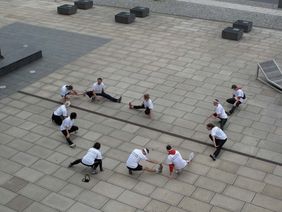 In der Videoperformance „Schöner Scheitern“ beschäftigt sich die Absolventin der Bauhaus-Universität Weimar Eva Olivin einen Tag lang mit einem weißen Kubus: Sie betastet ihn, horcht an ihm, prügelt auf ihn ein – doch nichts passiert. Nur der hohle Klang ihres Untersuchungsgegenstandes hallt noch lange nach. Das Künstlerduo Schröter und Berger hingegen wählte eine andere Strategie: Mit akribischen Pilgerregeln im Gepäck gingen sie auf eine Expedition durch Mittelthüringen.