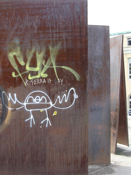 After explaining the distinction between ‚art for the art-system’ on one side and ‚public art’ on the other, I will discuss the successful strategies of officially commissioned public art as well as the restraints involved in this dependency. Then I will deal with the possibilities and limitations of ‚new genre public art’ ‚street art’ and other not officially sanctioned phenomena. Lastly, I will try to show the hidden relations between the latter and the ‚art for the art system’ and mention some of the consequences.