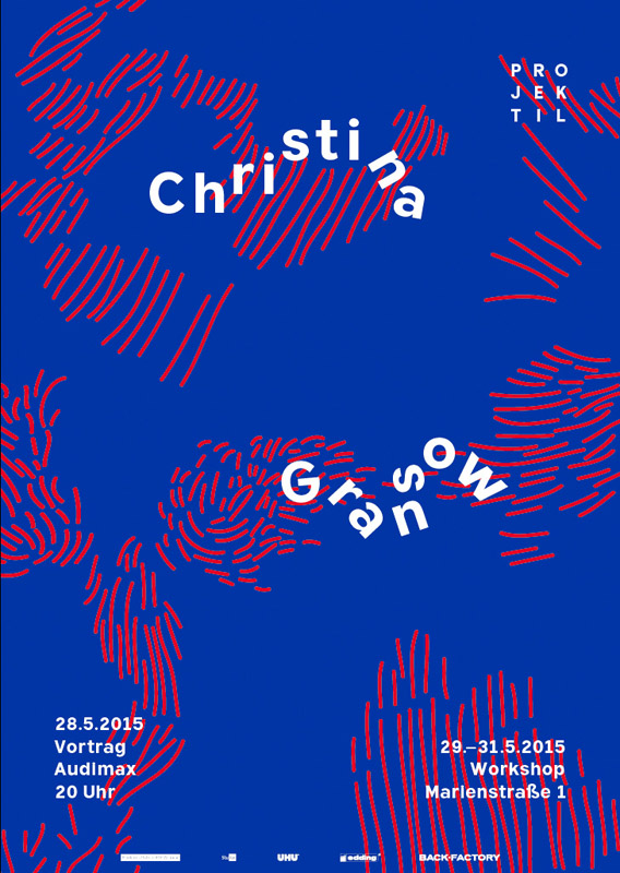 »Projektil« ist eine internationale Vorlesungsreihe an der Bauhaus–Universität Weimar, die 2007 von Studierenden der Fakultät Gestaltung initiiert wurde. Am Donnerstag, 28. Mai 2015, 20 Uhr findet eine Vorlesung mit Christina Gransow statt. Ab Freitag, 29. Mai 2015, kann der angeschlossene Workshop besucht werden.