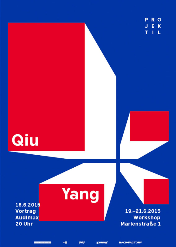 »Projektil« ist eine internationale Vorlesungsreihe an der Bauhaus–Universität Weimar, die 2007 von Studierenden der Fakultät Gestaltung initiiert wurde. Am Donnerstag, 18. Juni 2015, 20 Uhr findet eine Vorlesung mit Qiu Yang statt. Ab Freitag, 19. Juni 2015, kann der angeschlossene Workshop besucht werden.