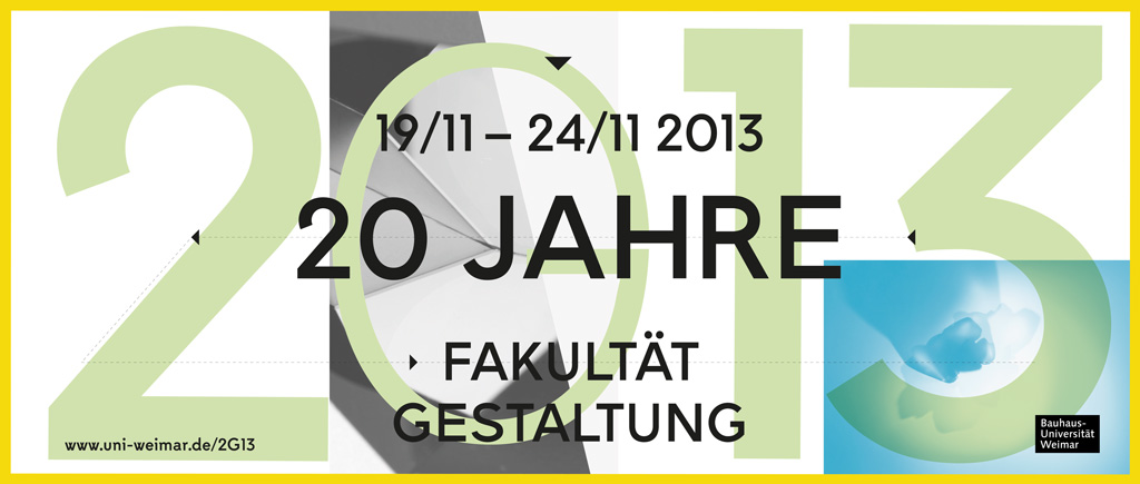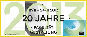 Im November 1993 wurde die Fakultät Gestaltung der Bauhaus-Universität Weimar gegründet. Anlässlich ihres 20-jährigen Bestehens initiiert die Fakultät vom 19. bis 24. November 2013 eine Festwoche mit zahlreichen Ausstellungen, Workshops und Vorträgen, zu denen die Öffentlichkeit herzlich eingeladen ist.