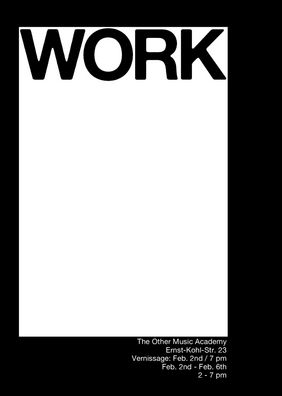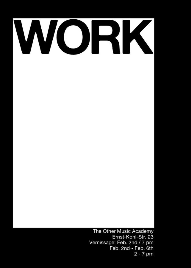 WORK is an exhibition of pieces conceived and created by students of the international Public Art and New Artistic Strategies MFA program at the Bauhaus-Universität Weimar. The vernissage takes place on Monday, February 2 at the Other Music Academay.