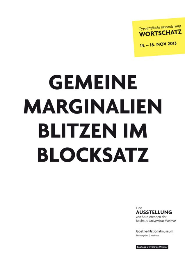 Im Rahmen einer Literatur-Fachtagung der Klassik Stiftung Weimar präsentieren Studierende der Fakultät Gestaltung der Bauhaus-Universität Weimar ab dem 14. November 2013 drei Tage lang ihre Arbeiten.