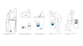 Zum anderen ist es mit PLURA möglich, noch klares Wasser in einem separaten Behälter aufzufangen und somit in den Wasserkreislauf einzugreifen. »Mit unserem Entwurf wollten wir den Nutzer dazu motivieren, mehr Gefühl für den eigenen Wasserverbrauch zu entwickeln und dadurch kostbares Trinkwasser zu sparen.« Über einen Doppelstöpsel, der mit einem dualen Rohrsystem verbunden ist, wird das sogenannte Grauwasser aufgefangen und kann dort weiter verwendet werden, wo keine Trinkwasserqualität benötigt wird. Dieses bisher vergeudete Wasser kann beispielsweise zum Gießen des Gartens, zum Putzen der Wohnung und zu vielem mehr verwendet werden.