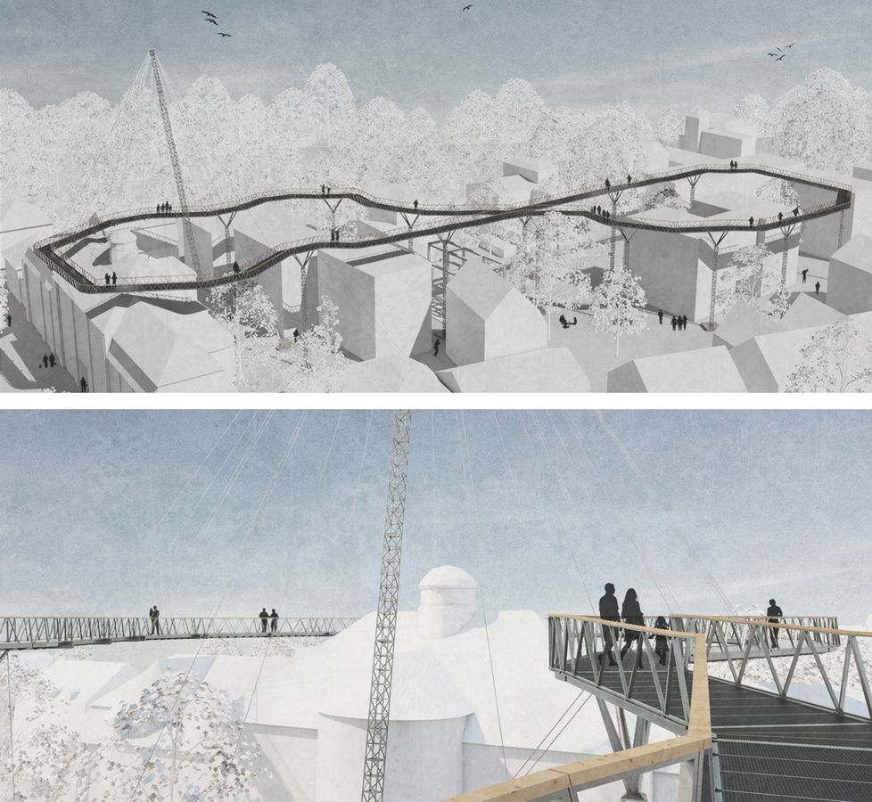 Das zweite Projekt wurde von den Architektur-Masterstudenten Alexander Bense und Johannes Märtin im vergangenen Jahr entwickelt. Bei dem Bauhaus.Walk handeltes sich um ein mobiles Baukastensystem, bei dem temporäre Höhen nicht nur den Naturraum inszenieren, sondern auch als Skywalks an historischen und denkmalgeschützten Gebäuden oder zu Sport- und Kulturveranstaltungen zum Einsatz kommen.