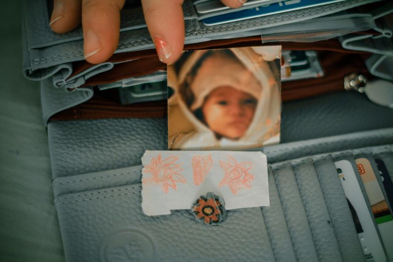 Die Dinge, die ich im Portemonnaie mit mir herumtrage sind quasi Glücksbringer. Ich sehe sie mir nicht wirklich an, aber es ist schön zu wissen, dass sie da sind. Ich habe da diesen Blumensticker, den ich bekam als ich in Polen war. Er klebte an einer Münze die eine Polin mir gab. Dann sind da noch die Blumen, die meine Nichte für mich malte – das ist auch ein Bild von ihr. Meine Schwester heiratete einen Deutschen und sie leben jetzt gemeinsam in Deutschland. Einen großen Teil meines Lebens bekomme ich meine Familie nicht u sehen, aber meine Eltern sind stolz auf meine Schwester und mich, weil sie wissen, dass unser Leben hier besser ist.