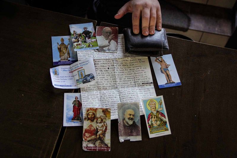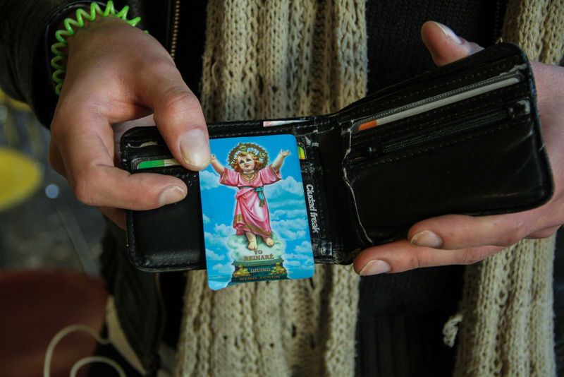 Den Brief, den ich bei mir trage ist eine Erinnerung von meiner Freundin, die immer in mir erhalten bleiben wird. Sie gab mir alles und unsere Liebe füreinander ist grenzenlos. Die Karten, die ich bei mir trage zeigen Heilige. Meine Heimatstadt ist sehr klein aber voller Traditionen. Jeden Monat gibt es einen Zeitraum der Festlichkeiten für jeden Heiligen und all das beginnt im Januar und geht bis Dezember. Für mich sind sie wie ein Schutz, und Religion ist eine sehr wichtige Sache für mich. Ich bin mit vielen Emotionen gegenüber der katholischen Kirche aufgewachsen, also ist es auch jetzt ein großer Teil von mir.